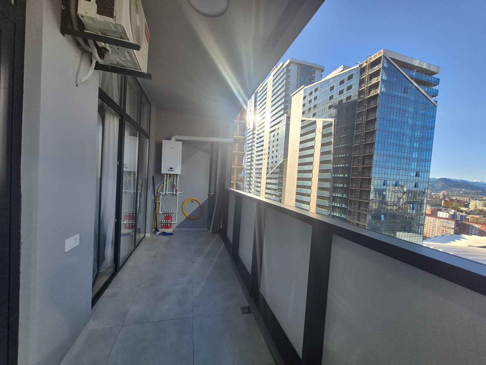 Продаётся двухкомнатная квартира в комплексе Black Sea Tower, ул. Шартава, 16, блок Б. Расположена на высоком этаже, откуда открываются виды на город и горы.