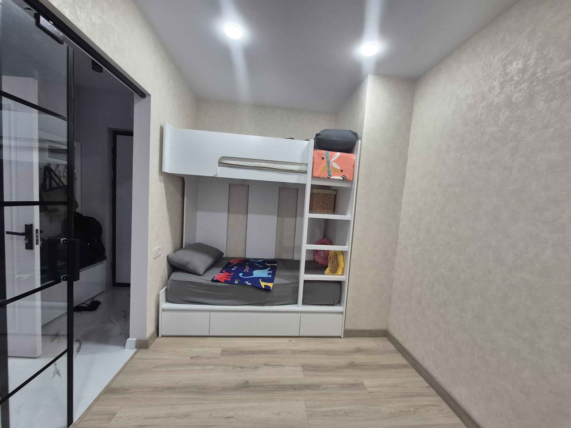 две отдельные спальни — основная с окном и детская без окна, но со вторым светом, создающая уютное и безопасное пространство для ребёнка.