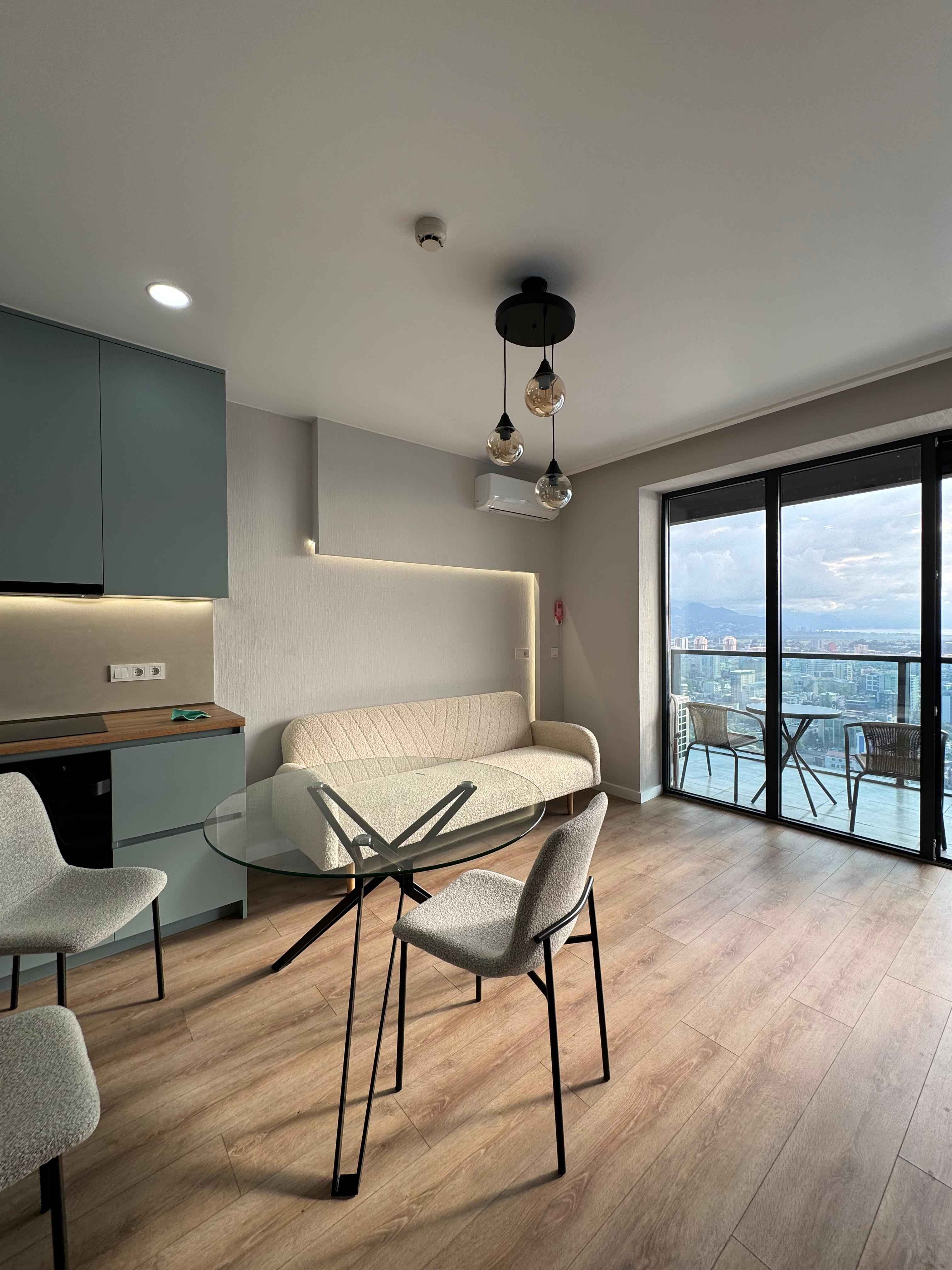 Продается уютная квартира в Calligraphy Towers в центральном районе Батуми. Гарантированный вид на Аллею Героев, стадион, море и горы. Новый ремонт, есть вся необходимая техника для комфортного проживания: стиральная, посудомоечная машины, духовка. Кондиционеры в каждой комнате. Одна комната глухая без окна, но там есть вентиляция. Рядом магазины, кафе, аптеки и остановки транспорта. До моря — всего 10 минут пешком. Отличный вариант для жизни или долгосрочной сдачи в аренду.