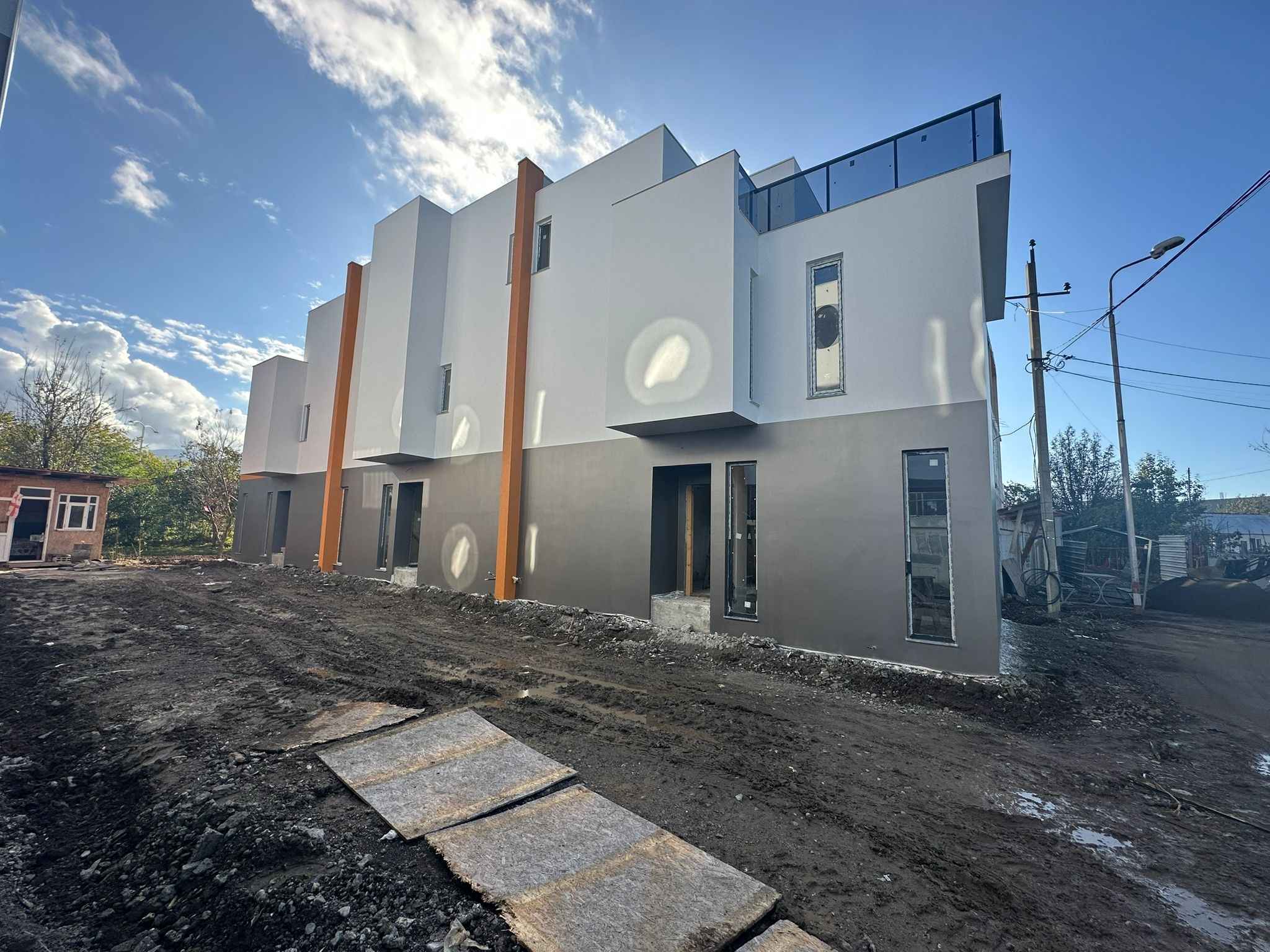 3-ЭТАЖНЫЙ ТАУНХАУС С ЛОДЖИЕЙ, РУФТОПОМ И СОБСТВЕННЫМ ДВОРОМ Отличный вариант для жизни у моря или инвестиций — просторный дом с современным дизайном и всеми возможностями для комфортной планировки! Локация: Батуми, район Аэропорта, ул. Аэропортское шоссе, 212В Площадь: 160 м² Этажность: 3 этажа Состояние: белый каркас Особенности дома: Современный дизайн и планировка Большая лоджия с прекрасным видом Руфтоп для отдыха Собственный двор 2 балкона Возможность обустроить под свой стиль