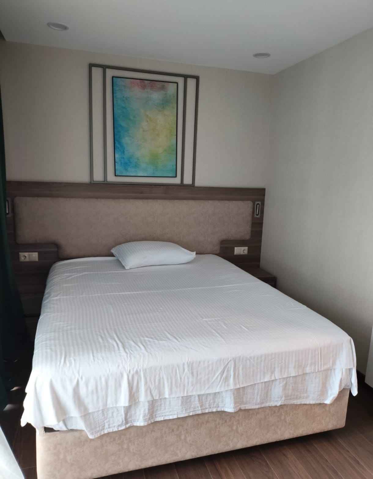 Сдаётся в аренду квартира в жилом комплексе sunset 1+1. В квартире есть отопление. Две двуспальные кровати. Боковой вид на море. Без животных