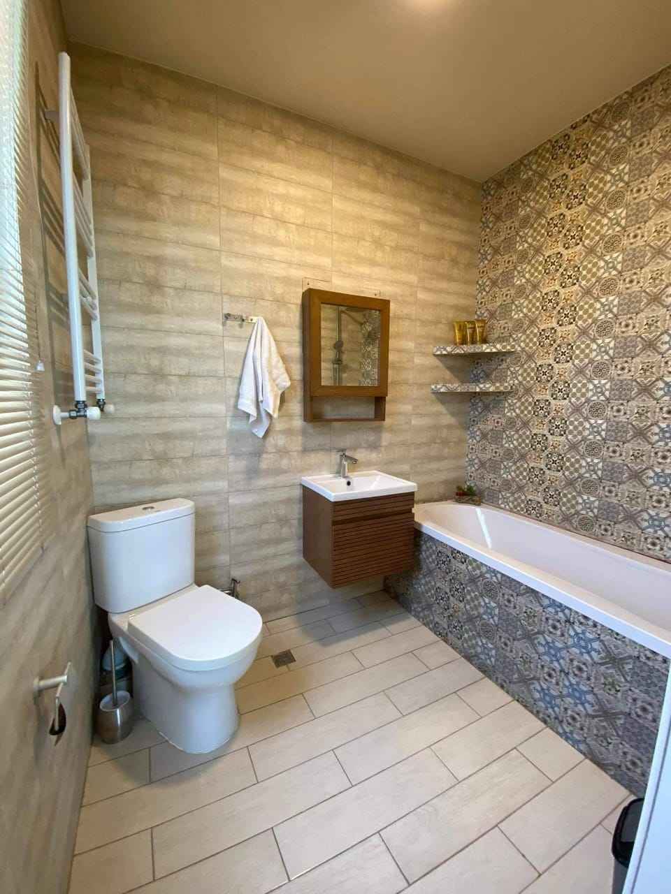 Центральное отопление, тёплый пол в кухне-гостиной.
