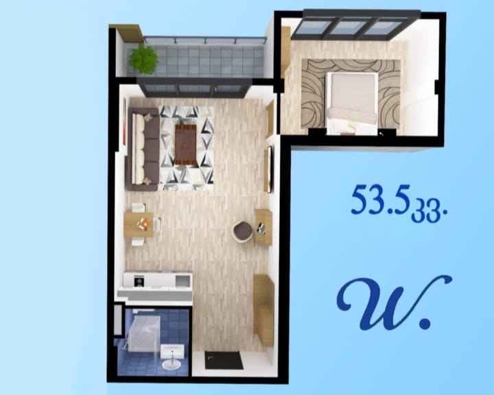 Продаётся квартира 1+1 в состоянии чёрного каркаса в комплексе West Point.