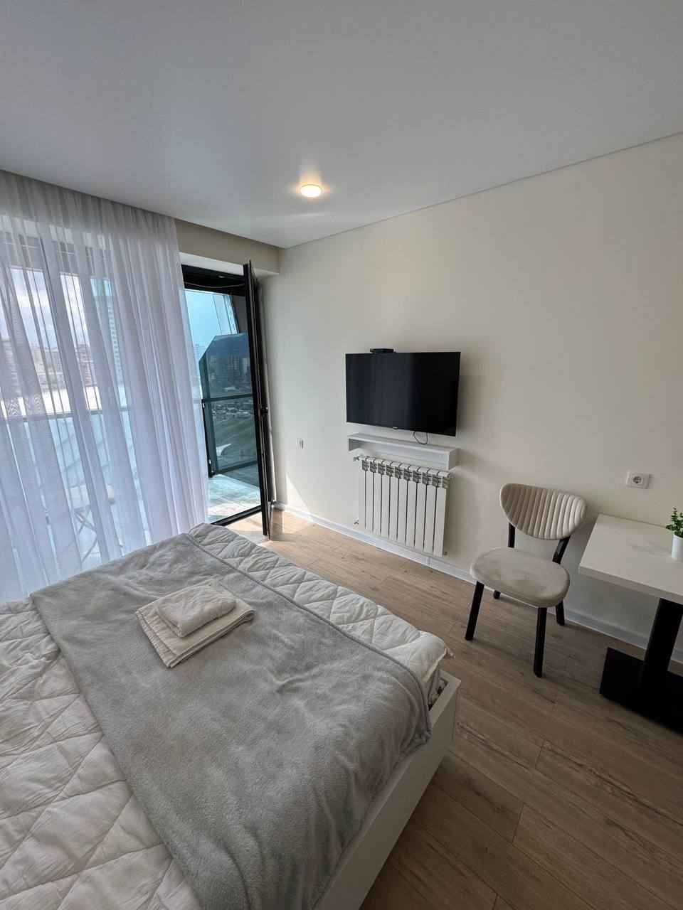Студия на 14 этаже в Калиграфе, сторона стадиона, полностью укомплектована и готова дл жизни.