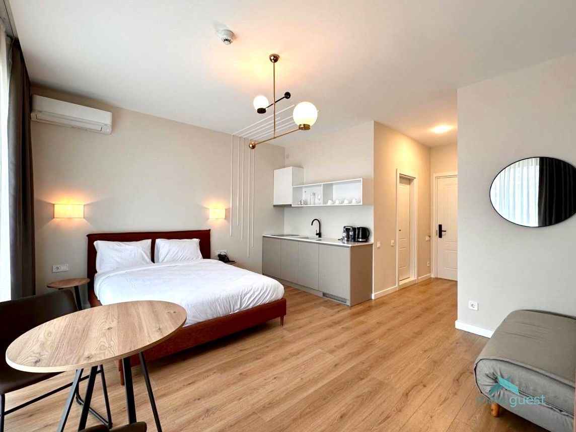 В продаже студия в комплексе Steps. Полностью укомплектована и готова для жизни или сдачи в аренду. 5 этаж с видом на бассейн. Отличная локация, 150м. до парка Качинских и моря, рядом торговый центр Мэтро сити, тренажерный зал, SPA и другое.