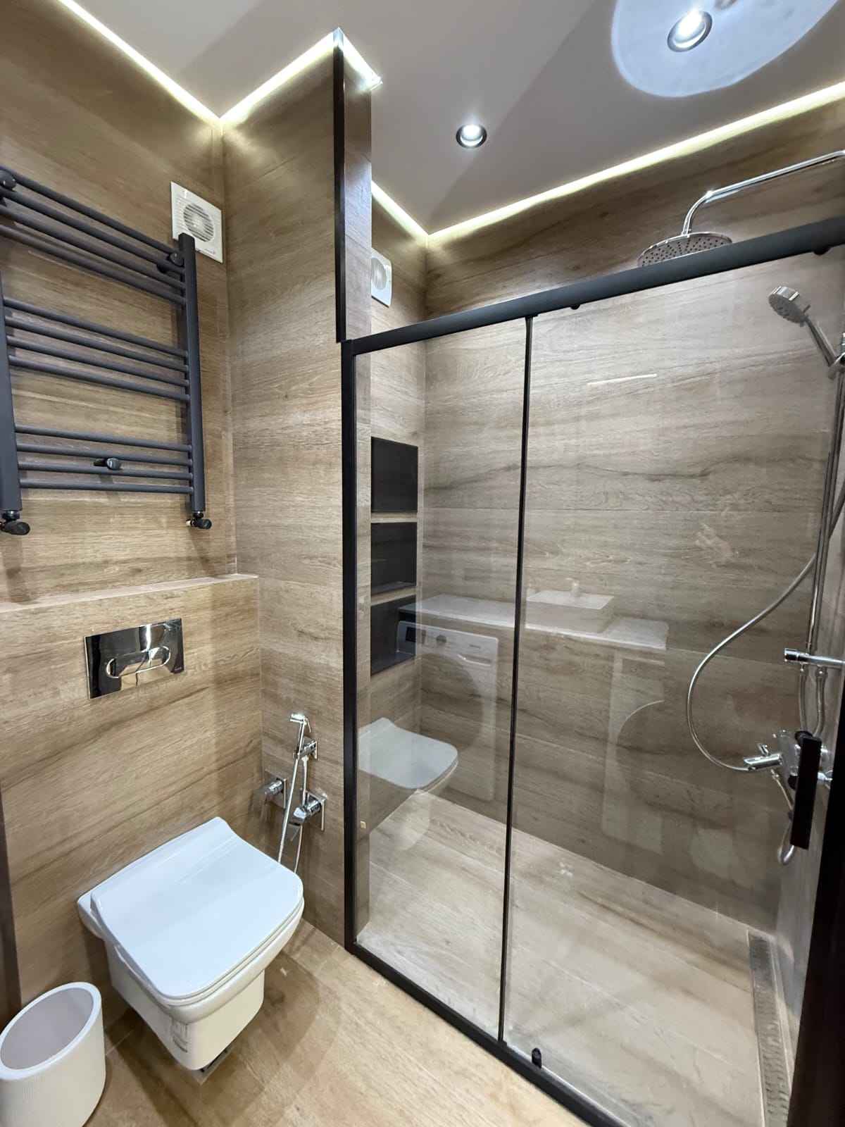 Квартира – «умный дом»: термостаты, все освещение управляется с телефона, три телевизора Toshiba 4K, даже постельное белье полностью марки Manamo, посуда и кухонные принадлежности Super и Madame Coco. В квартире центральное отопление, подогрев пола в гостиной и ванной, немецкий трехслойный паркет Agia в спальне.