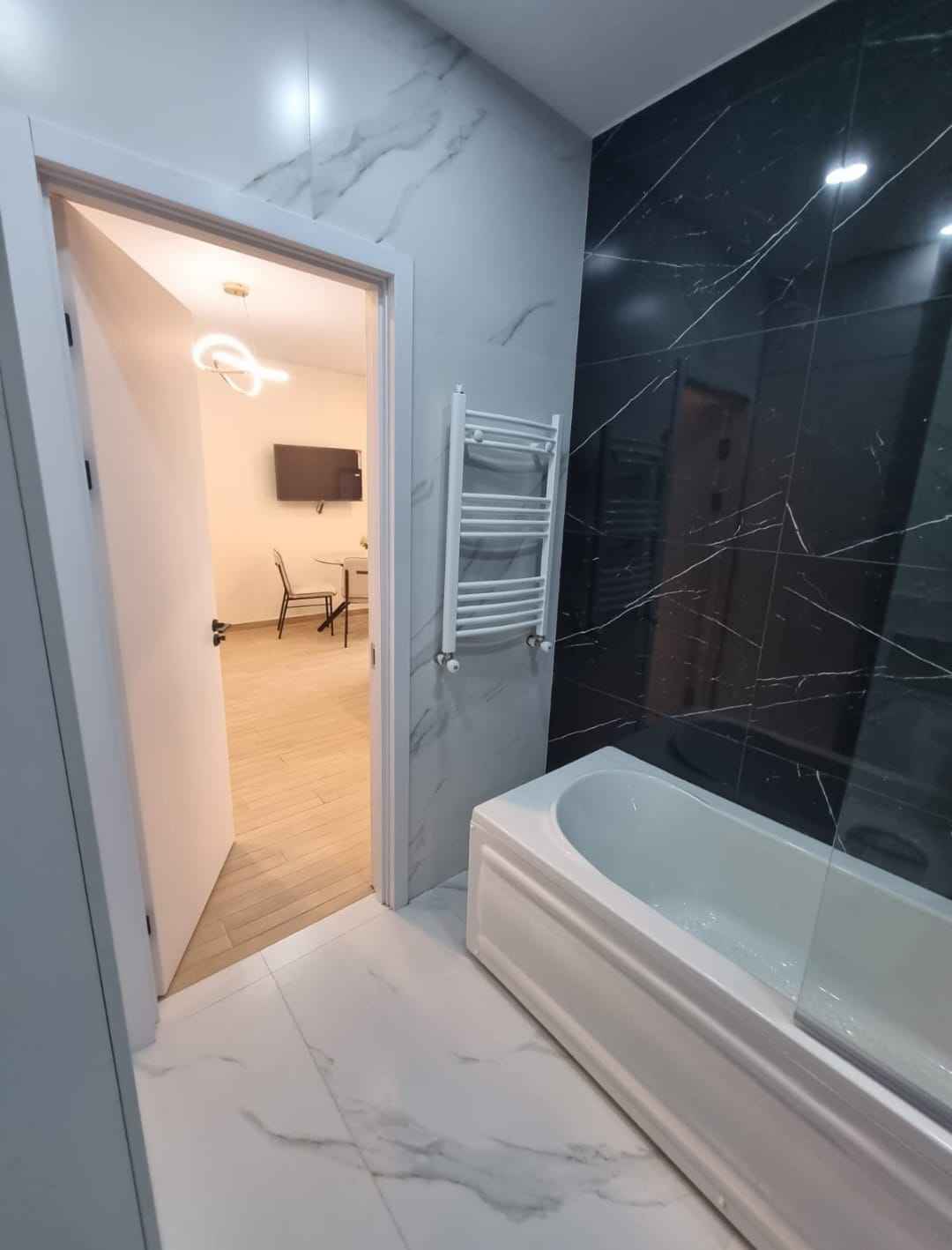 Black Sea Towers Блок Б 1+1 + гардероб + рабочий кабинет 56 кв 10 этаж Вид на старый город Квартира будет готова в НОЯБРЕ! УЖЕ ГОТОВА ВАННАЯ - ОСТАВШИЕСЯ ФОТО ПРИМЕР РЕМОНТА ПОД КЛЮЧ! Есть возможность повлиять на расцветку мебели или фасадов. КОНФИГУРАЦИЯ КВАРТИРЫ В санузле ванная с подсветкой, душевая кабина, гигиенический душ, унитаз с инсталляцией, качественная сантехника. Гардероб в спальне + отдельный рабочий кабинет Газовый котёл 2 вертикальные батареи 2 кондиционера Hyundai Кухня с полной комплектацией техникой: посудомоечная машина Gorenje, вытяжка Bosch, духовой шкаф Gorenje, варочная поверхность Gorenje, встроенный холодильник Gorenje, стиральная машина Gorenje. Круглый обеденный стол с 3 стульями. Большой шкаф в прихожей, ТВ зона с подсветкой, стол в рабочий кабинет, рабочее кресло, точечные светильники и 2 люстры. В эту цену так же входит кровать с подьемным механизмом, диван, макияжный столик, большое зеркало, мебель в гардеробную комнату