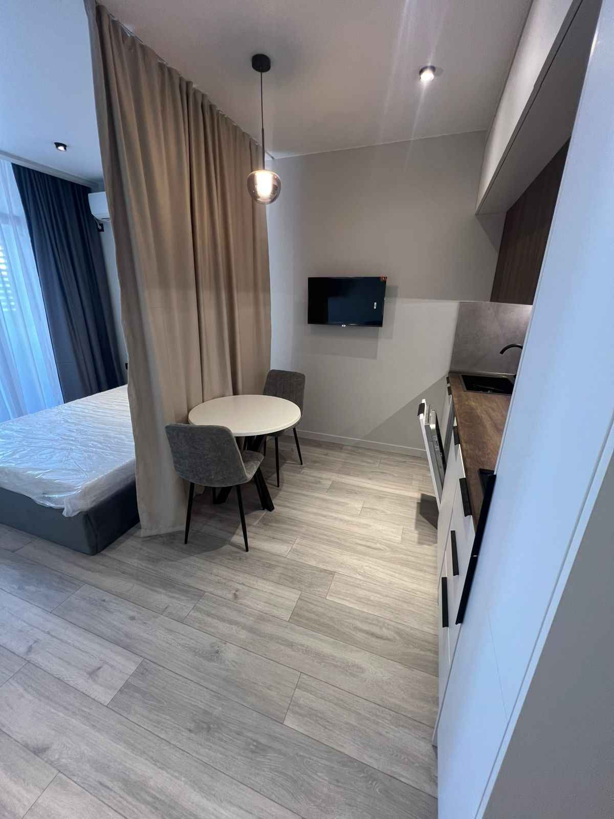 Продаётся квартира-студия в ЖК Sunrise на Шартава, 32. 7 этаж, 37 кв. м. Новый ремонт, никто не жил, вся мебель и техника в пленке! Посудомоечная машина, Стиральная машина, Электроплита, Холодильник, 2 телевизора Smart TV, Кондиционер. Кровать с подъёмным механизмом. Есть возможность организовать рабочее место или установить комод. Рядом стадион, супермаркеты, клиника, банки, рестораны, кафе. 10 минут до моря.