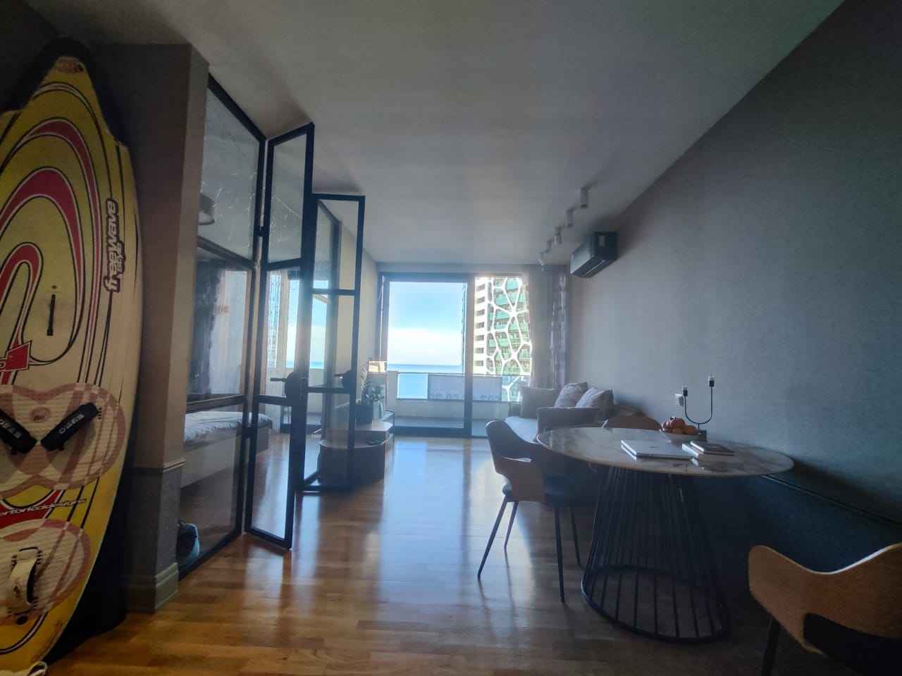 Квартира с качественным ремонтом (не “батумский” формат, делалась для себя, не на продажу): - Премиальные алюминиевые стеклопакеты -Натуральный паркет -Испанский камень в отделке -Качественные материалы и фурнитура