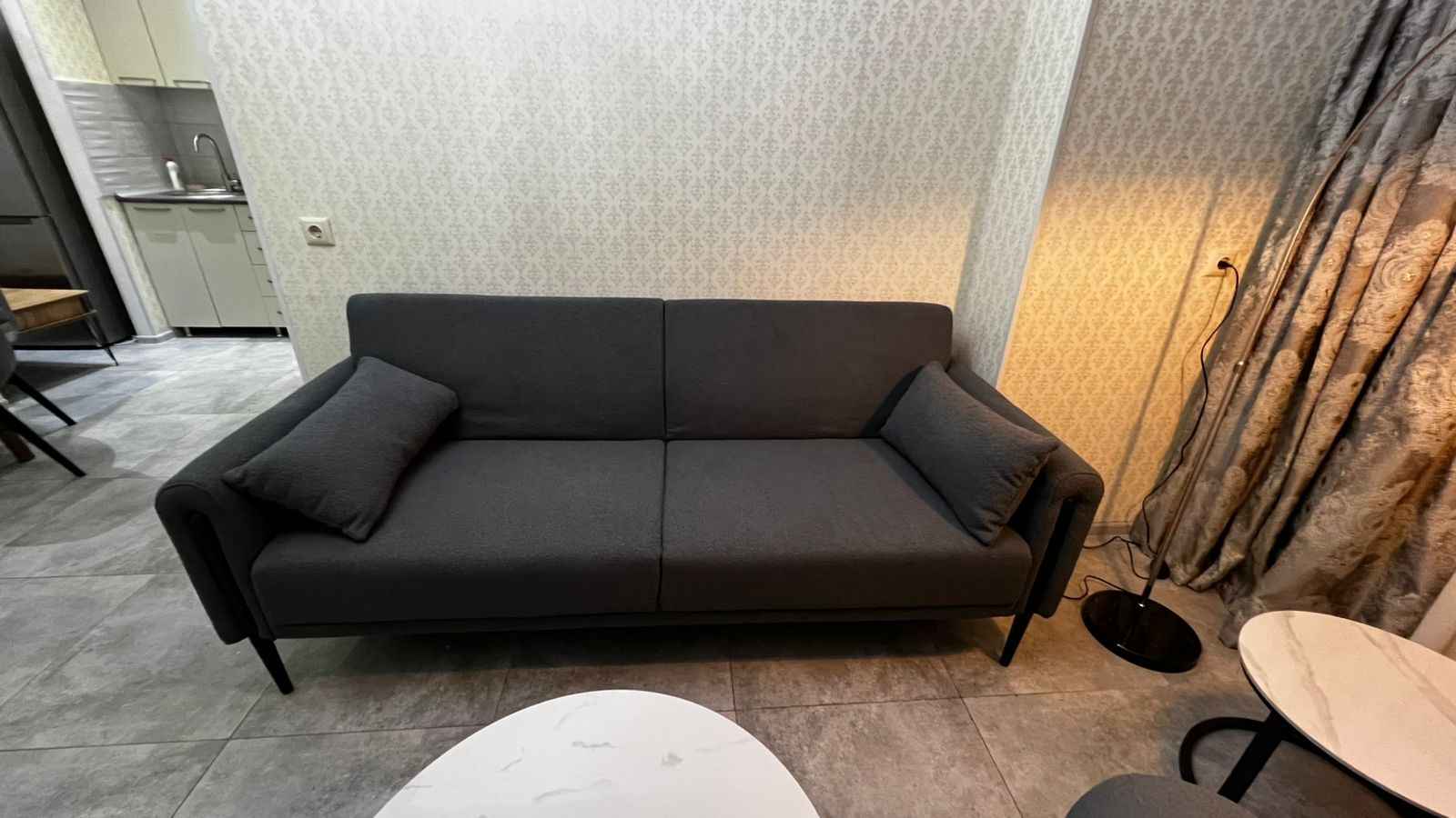 Сдается квартира 1+1 в новостройке.В квартире есть кондиционер, центральное отопление, телевизор, холодильник, стиральная машинка, газ.