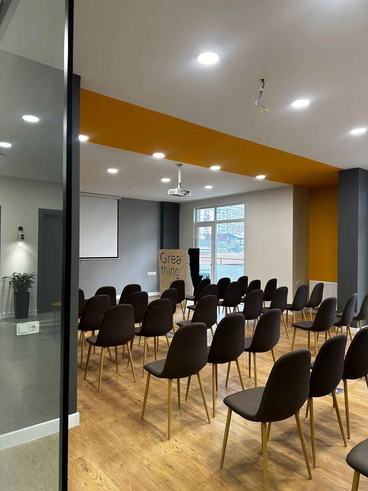 ოფისი არის მრავალფუნქციური, აქვს როგორც სამუშაო ოთახები, ასევე კონფერენციებისა და ტრენინგებისთვის სივრცე 50 ადამიანის ტევადობით.