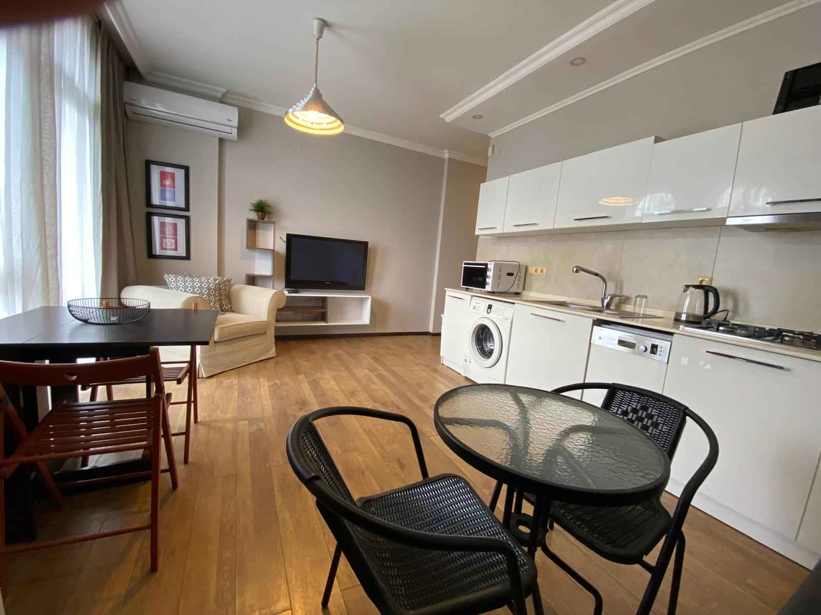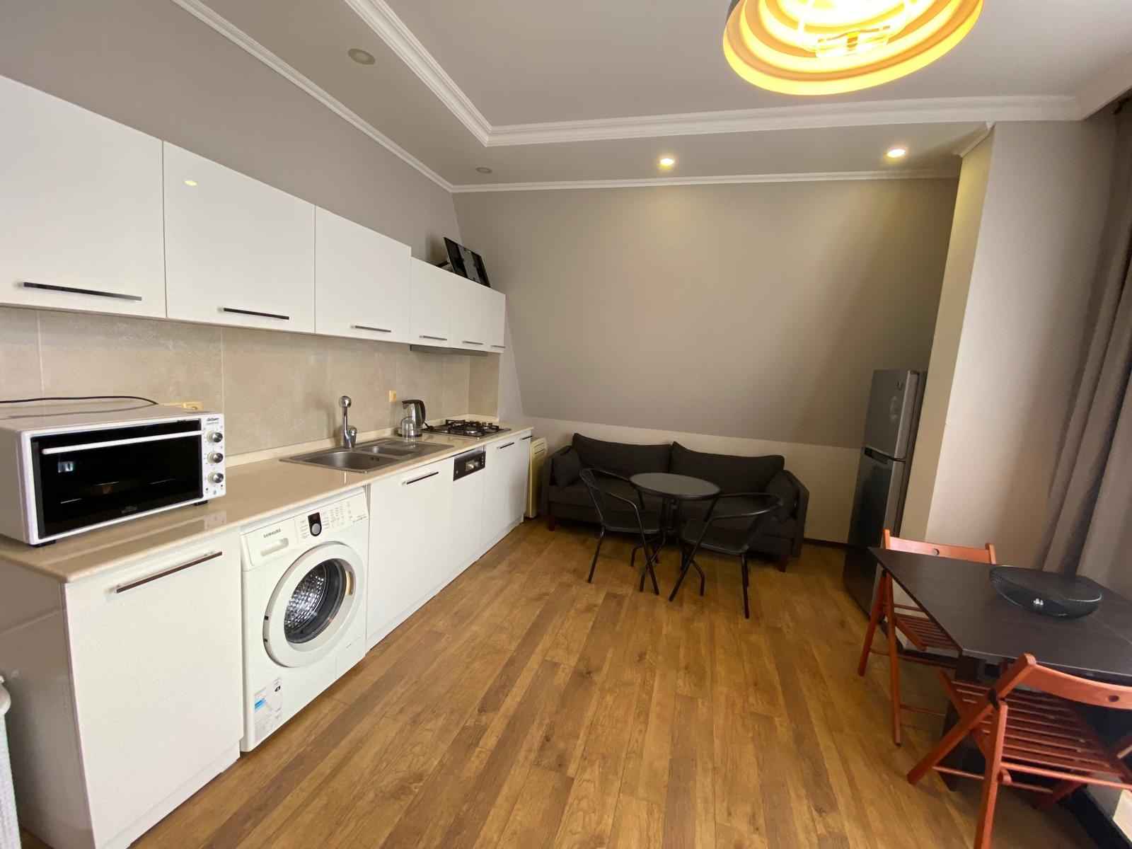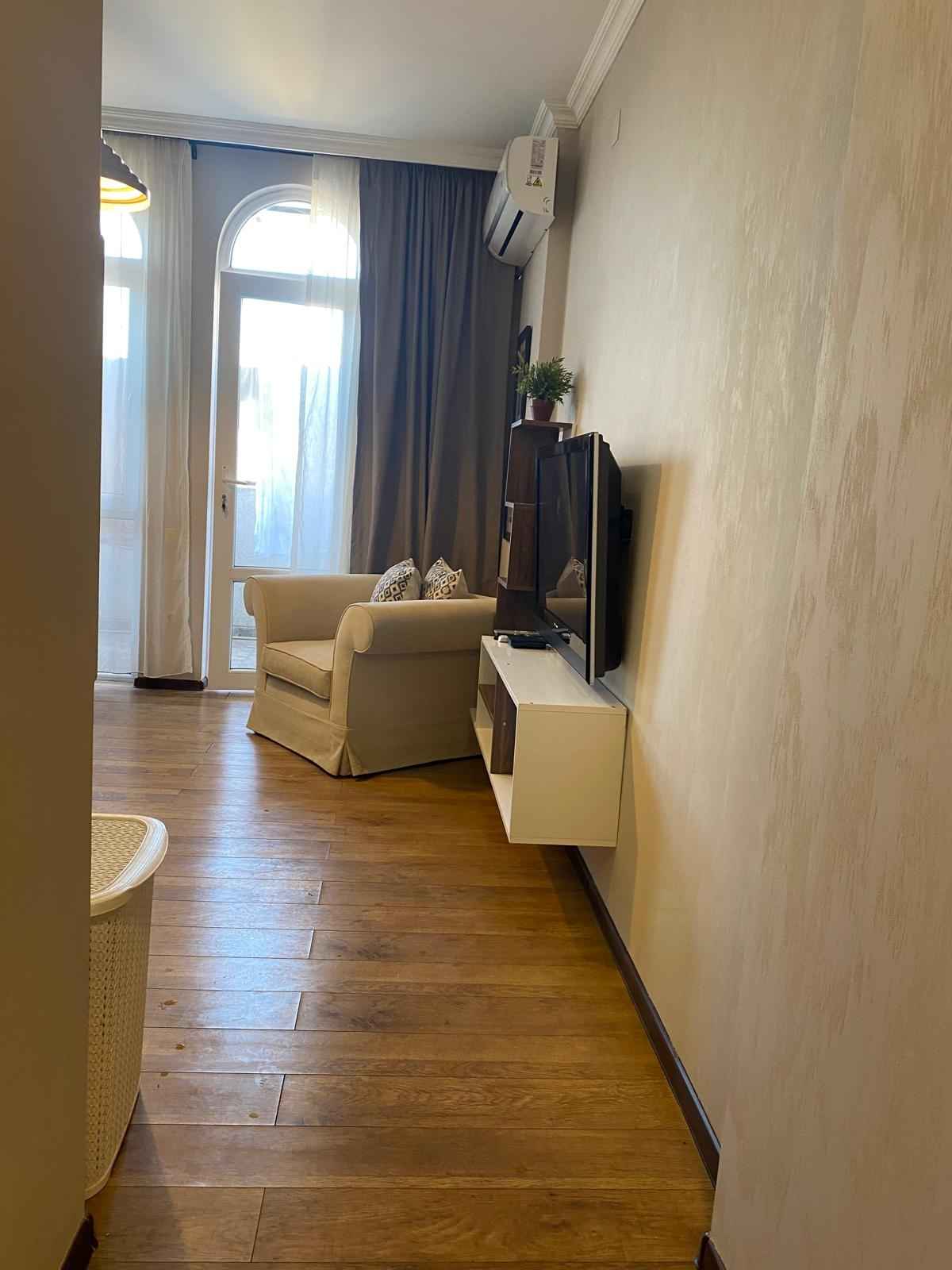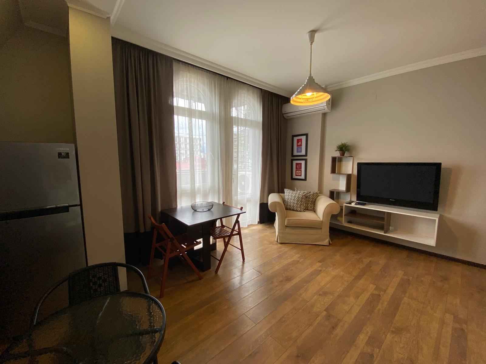 Старый город, в 5 минутах от парка 6 мая на Меликишвили 51, на долгий срок сдается квартира 1+1, 11 этаж. Балкон с красивым видом на город. Светлая спальня + гостинная с кухней. Вся мебель и техника + бытовая мелкая, посуда и белье. Посудомоечная машина, стиралка, кондиционер, холодильник, микроволновка. Газовое отопление.