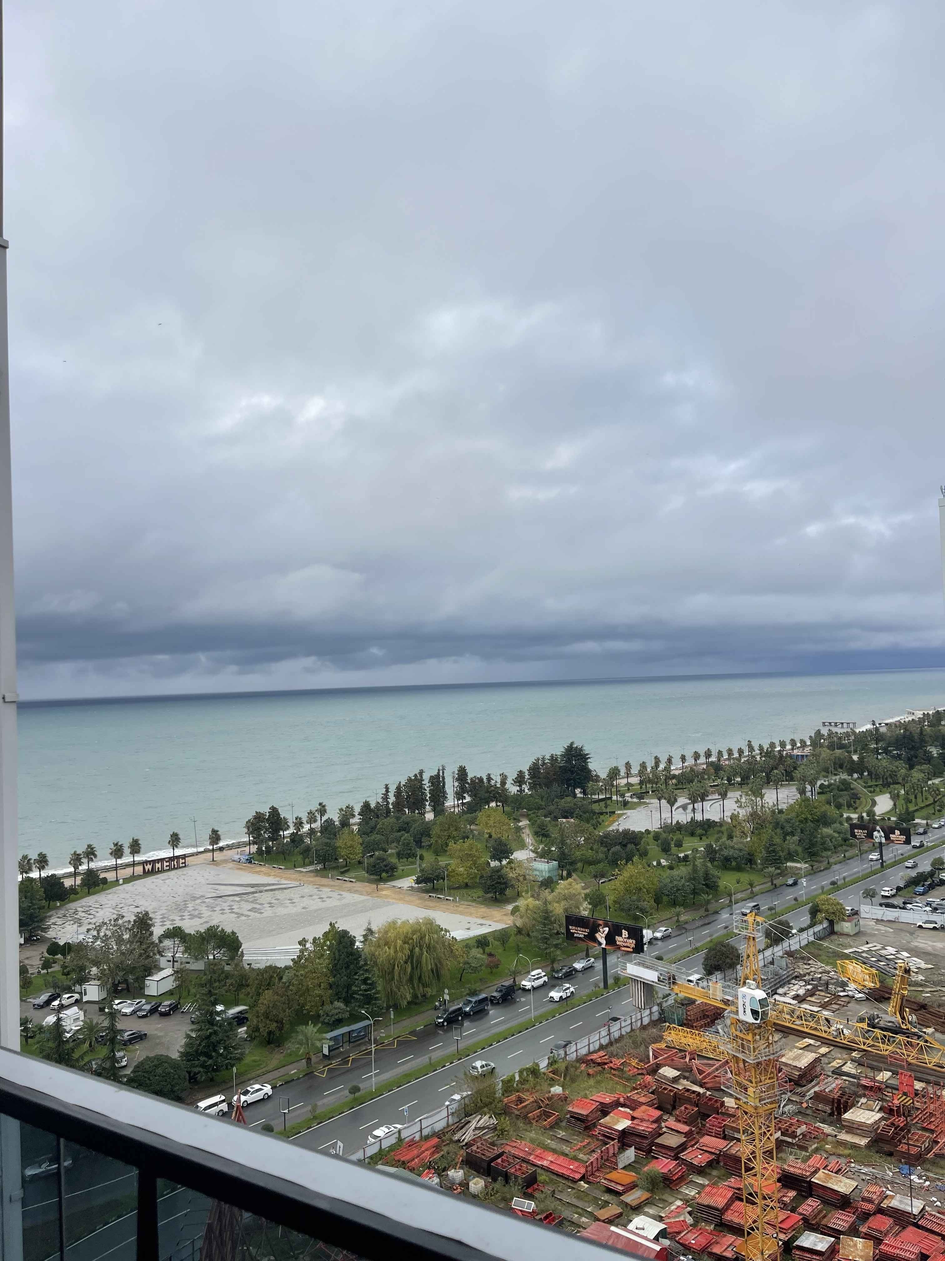 Квартира находится на 15-м этаже, из окон открывается великолепный вид на море и зелёный парк.