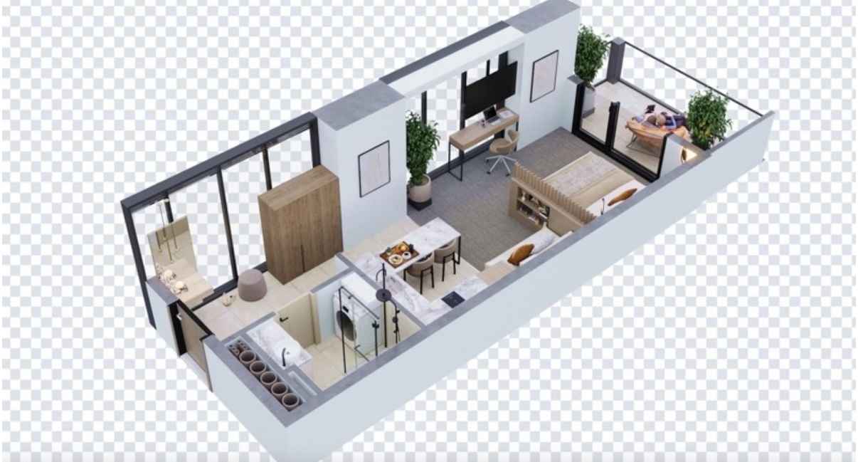 Due to its corner layout, the apartment will be filled with maximum natural light (as shown in the layout render).
