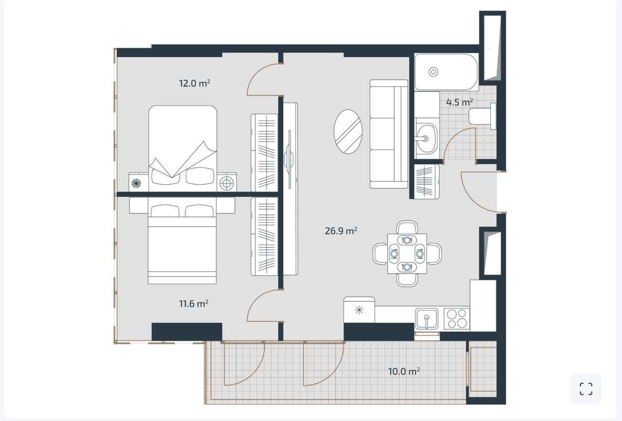 В продаже угловая квартира в строящемся комплексе Artex Parkline Оплачено уже 30%, рассрочка на 45 месяцев Квартира с 2 спальнями и маленьким балконом, имеет вид на горы и инфраструктуру комплекса. Цена ниже, чем у застройщика