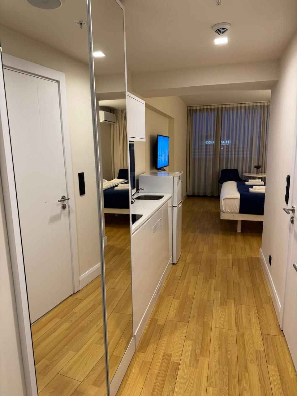 В продаже видовая студия в Orbi City. A блок с гарантированным видом на Юстицию. Высокий этаж. Студия полностью укомплектована и готова для сдачи в аренду.